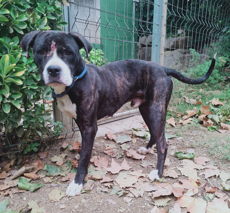 📍 Lloc de recollida: Sant Gregori 🐶 Sexe: Mascle 🐕 Raça: Pitbull 🎨 Color: Negre atigrat i blanc